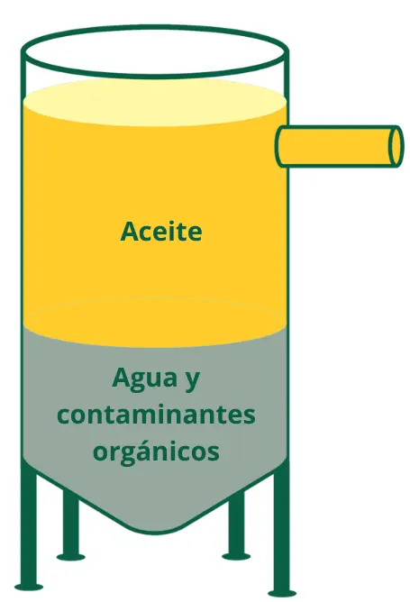 El proceso comienza con la purificación del aceite de fritura usado. El agua, los restos de comida y otras impurezas se eliminan mediante filtrado y decantación. De este modo, solo queda el aceite puro, listo para su posterior transformación en materia prima sostenible.